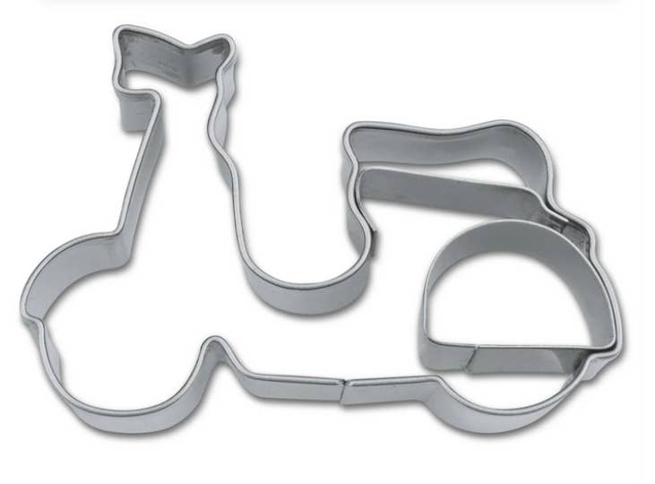 Vykrajovátko ve tvaru skútru. Vyrobeno z nerez oceli